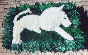 The bull is designed in carnations; arriving on a plaque of greens displayed on an easel.
